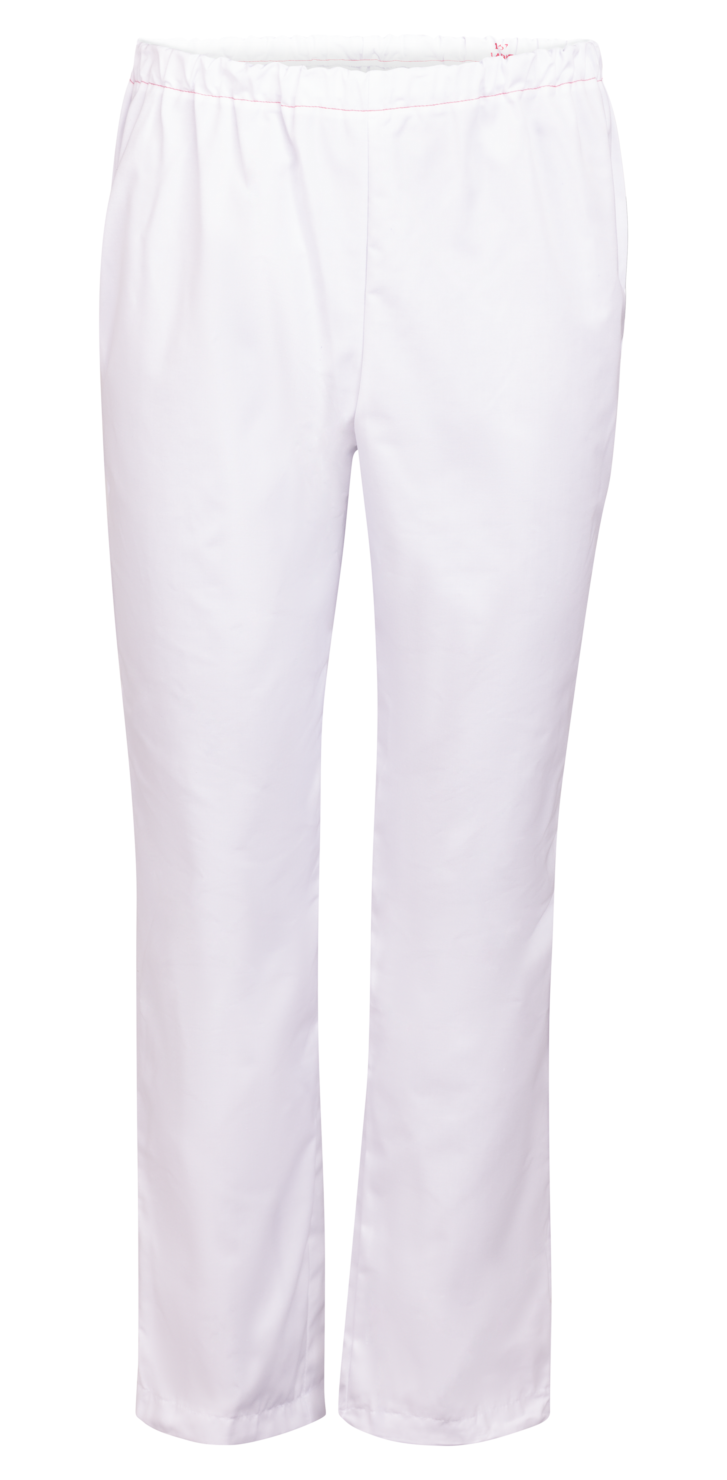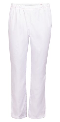 Bukse for dem som ikke ønsker strikk nede ved ankelen. Buksen har strikk i livet og rette ben. En baklomme. Fargekodet søm i linning og fargekodet størrelsesmerking i sidesøm.