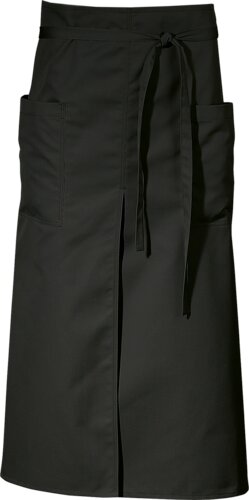 Bistroforkle med splitt midt foran for større bevegelsesfrihet. To sidelommer og hempe for oppheng. H:90cm. B:100cm