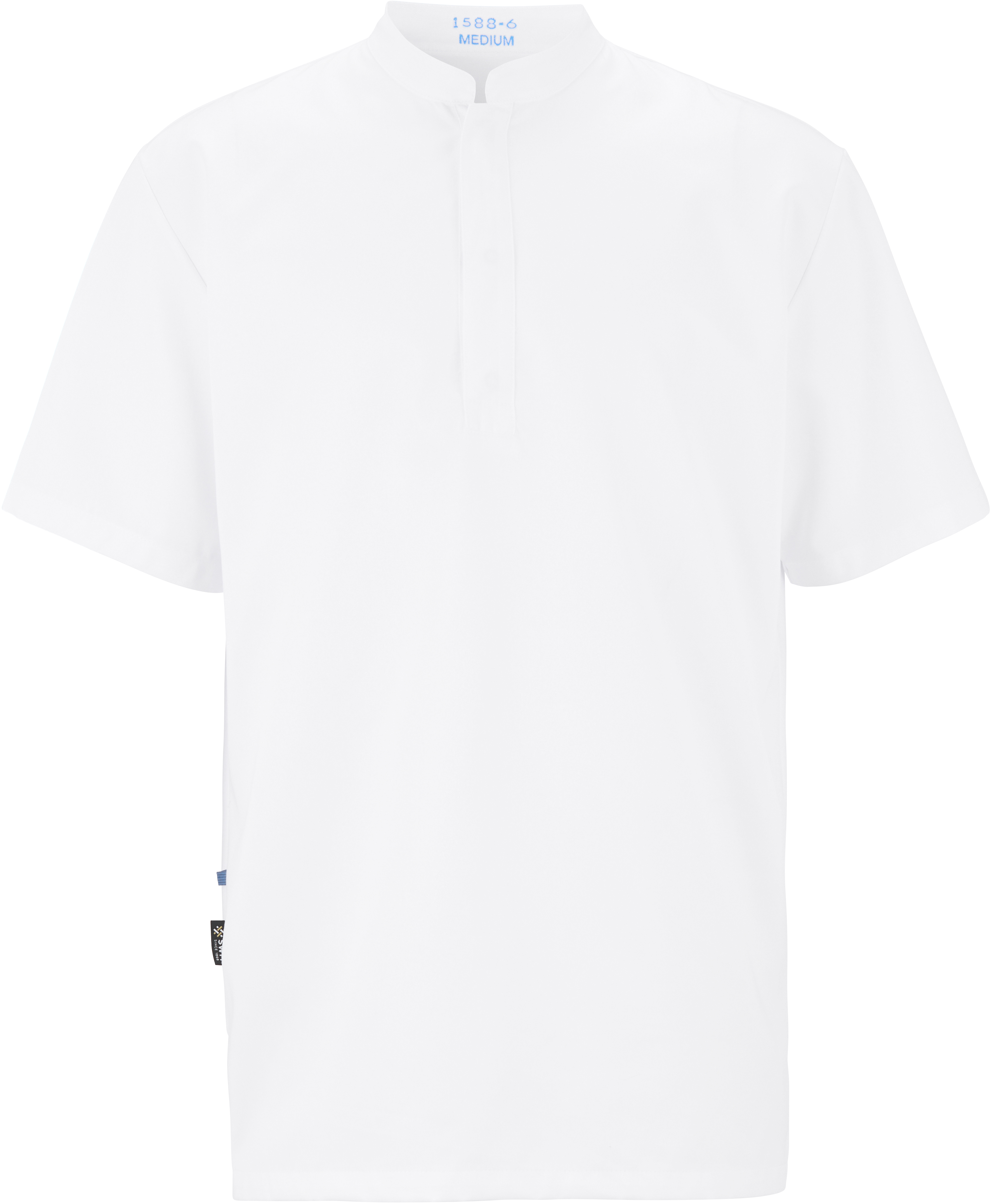 Korte ermer / trykknapper / Mandarin krage / Uten lommer / Tencel/Polyester / I samsvar med DIN 10524 / Justerbare ermer / Splitt i siden / UHF Chip