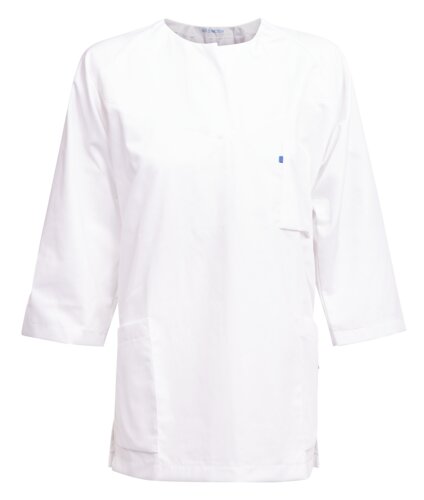 ¾ raglanerme / En brystlomme / To skråstilte sidelommer / Splitt i sidene / Rund hals med splitt / Kulørte kitler har nøkkelhempe i høyre lomme / Fargekodet størrelsesmerking på brystlomme / Krøllfribehandlet / Twill