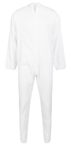 Pasientdrakt i bahagelig bomull tricot med lange ben og ermer. Knapper i rygg. Fargekodet størrelsesmerking rundt hals.