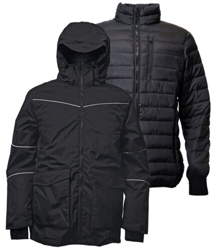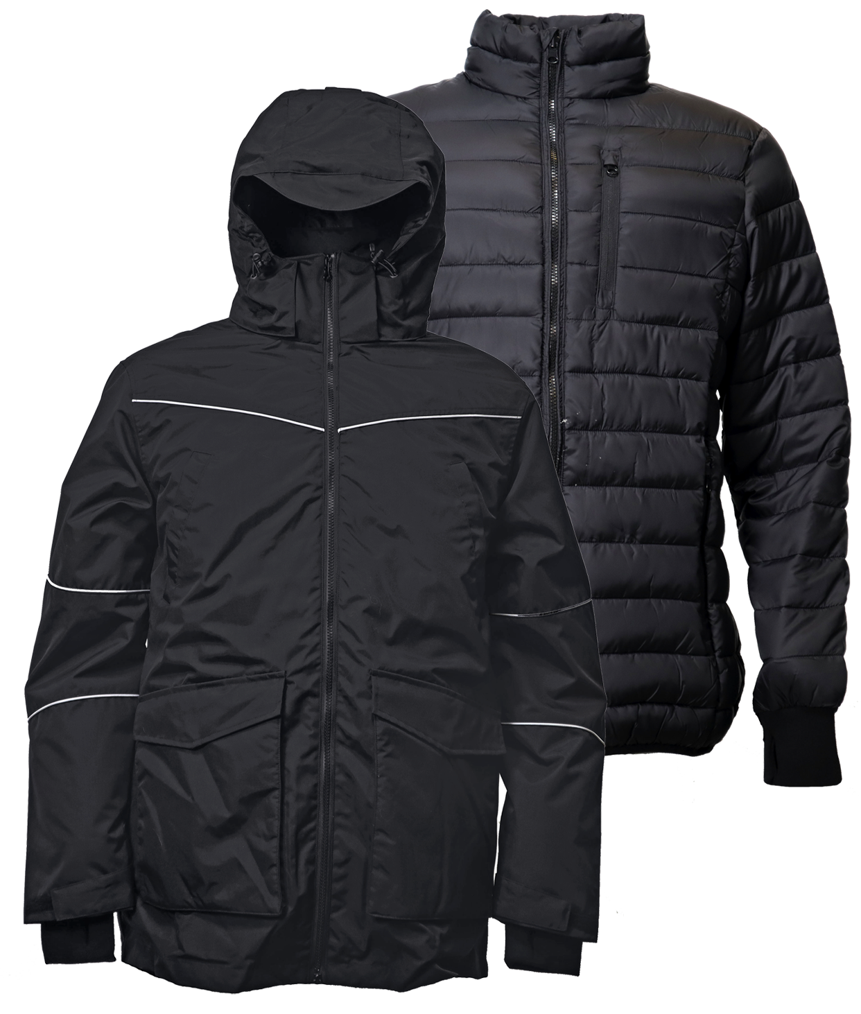 Varm og fin jakke. Jakken har reflekskanter og en vattert og avtagbar innerjakke. En perfekt kombinasjon av to jakker som du kan ha sammen eller hver for seg avhengig av været. Passer deg perfekt hvis du jobber innen helsevesen, førskole og skole, dyrehelse eller service.