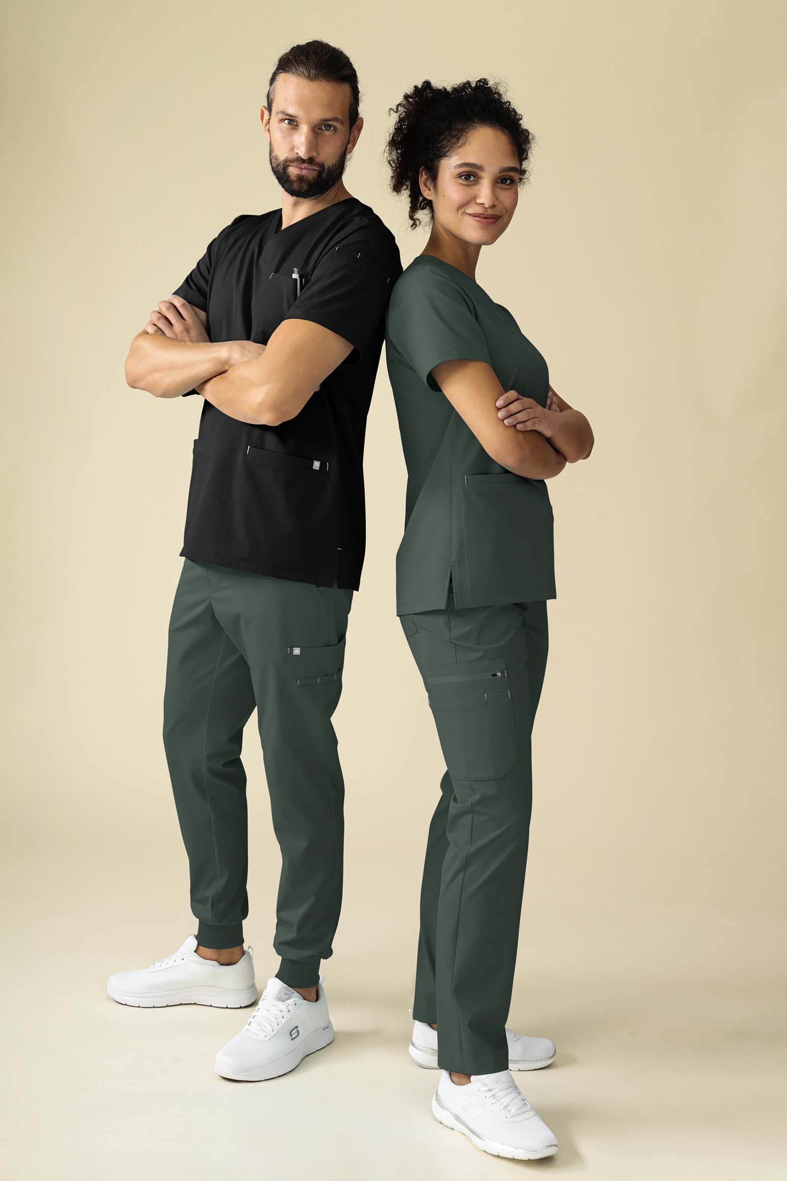 Komfortabel og sporty bukse. KAERE har skapt den perfekte balansen mellom trygge arbeidsklær for helsesektoren og den avslappede komforten fra sportsmote. Laget med vårt spesialutviklede care-flex-materiale – en kombinasjon av trebasert viskose og resirkulert ... Vis mer