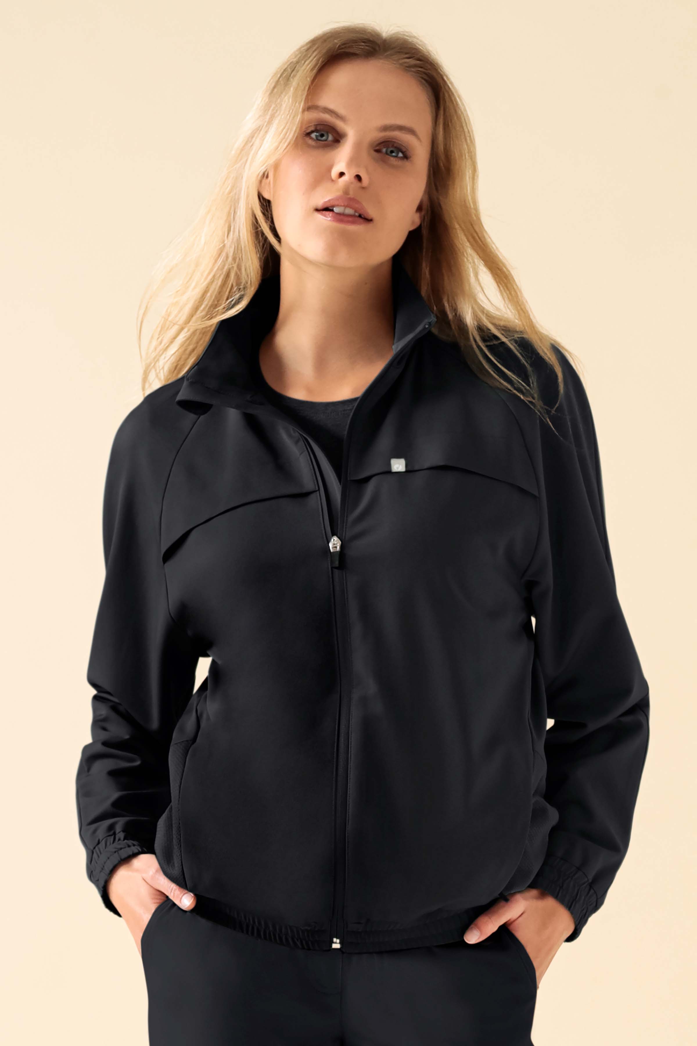 Raglanermer med elastiske mansjetter / Krage / Glidelås med hakebeskyttelse / Elastisk linning / 2 lommer med glidelås / 3 innerlommer / Helfôret med mesh-fôr / Lengde ca. 64 cm