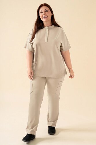 Lekker tunika med ståkrage og vide ermer. Denne sporty, feminine modellen gir et flatterende snitt og maksimal bevegelsesfrihet med vårt eksklusive care-flex-materiale, laget av resirkulert polyester og miljøvennlig viskose fra trær. Stoffet er pustende, hygienisk vaskbart på 60 grader, krøllfritt og klart rett fra vask – perfekt for deg på farten. Med praktiske lommer holder du enkelt alt du trenger trygt på plass