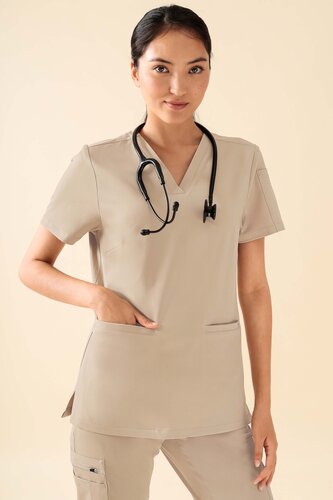 Stilren tunika som kombinerer komfort med funksjon. Denne sporty, feminine modellen gir et flatterende snitt og maksimal bevegelsesfrihet med vårt eksklusive care-flex-materiale, laget av resirkulert polyester og miljøvennlig viskose fra trær. Stoffet er pustende, hygienisk vaskbart på 60 grader, krøllfritt og klart rett fra vask – perfekt for deg på farten. Med fire praktiske lommer holder du enkelt alt du trenger trygt på plass.