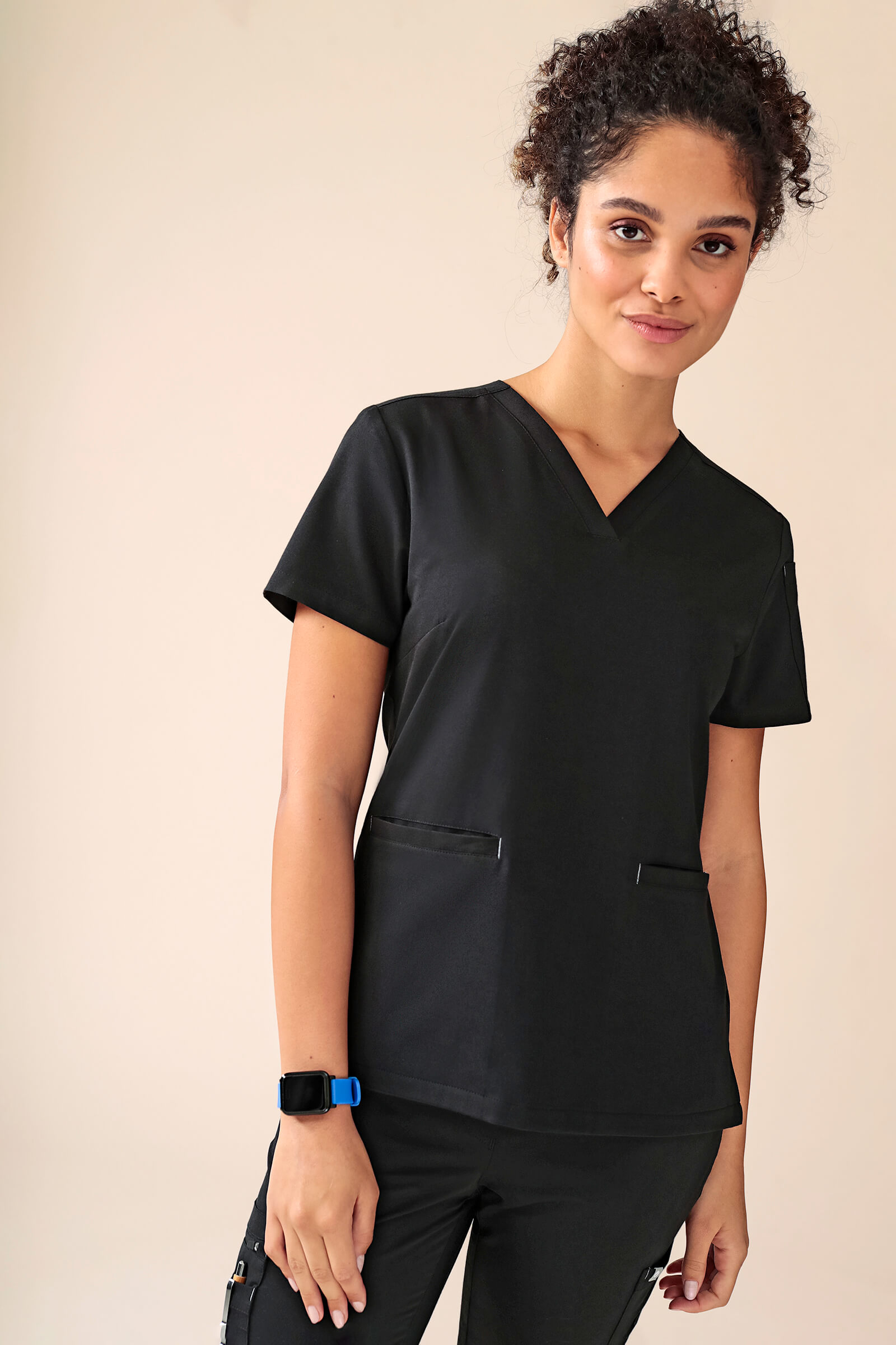 Stilren tunika som kombinerer komfort med funksjon. Denne sporty, feminine modellen gir et flatterende snitt og maksimal bevegelsesfrihet med vårt eksklusive care-flex-materiale, laget av resirkulert polyester og miljøvennlig viskose fra trær. Stoffet er pustende, hygienisk vaskbart på 60 grader, krøllfritt og klart rett fra vask – perfekt for deg på farten. Med fire praktiske lommer holder du enkelt alt du trenger trygt på plass.