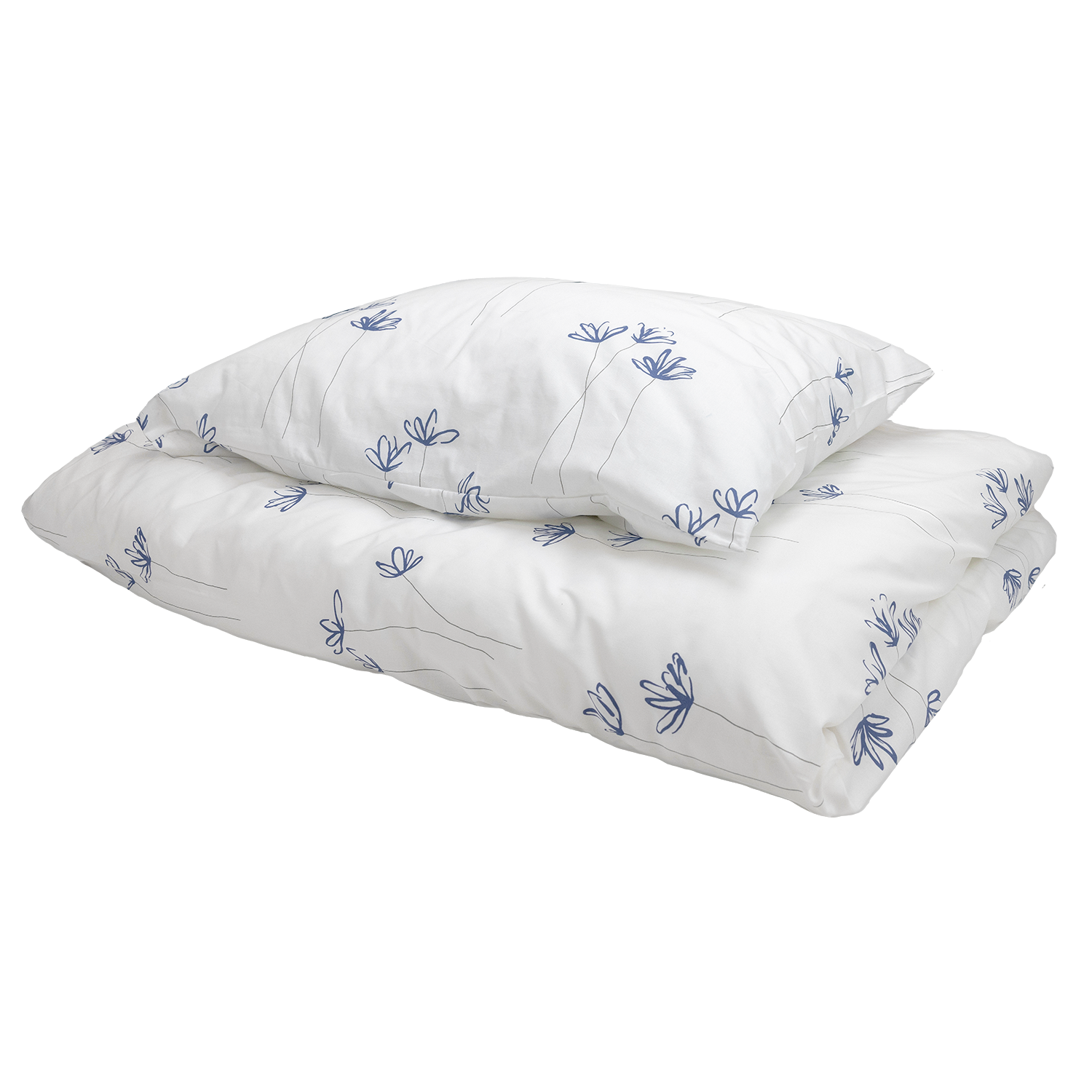 Behagelig glatt dynetrekk med blått kornblomstmønster. Uten helsevesen trykk. Egner seg godt til bruk på sykehus og helseinstitusjoner. Sideåpning.