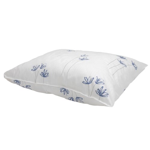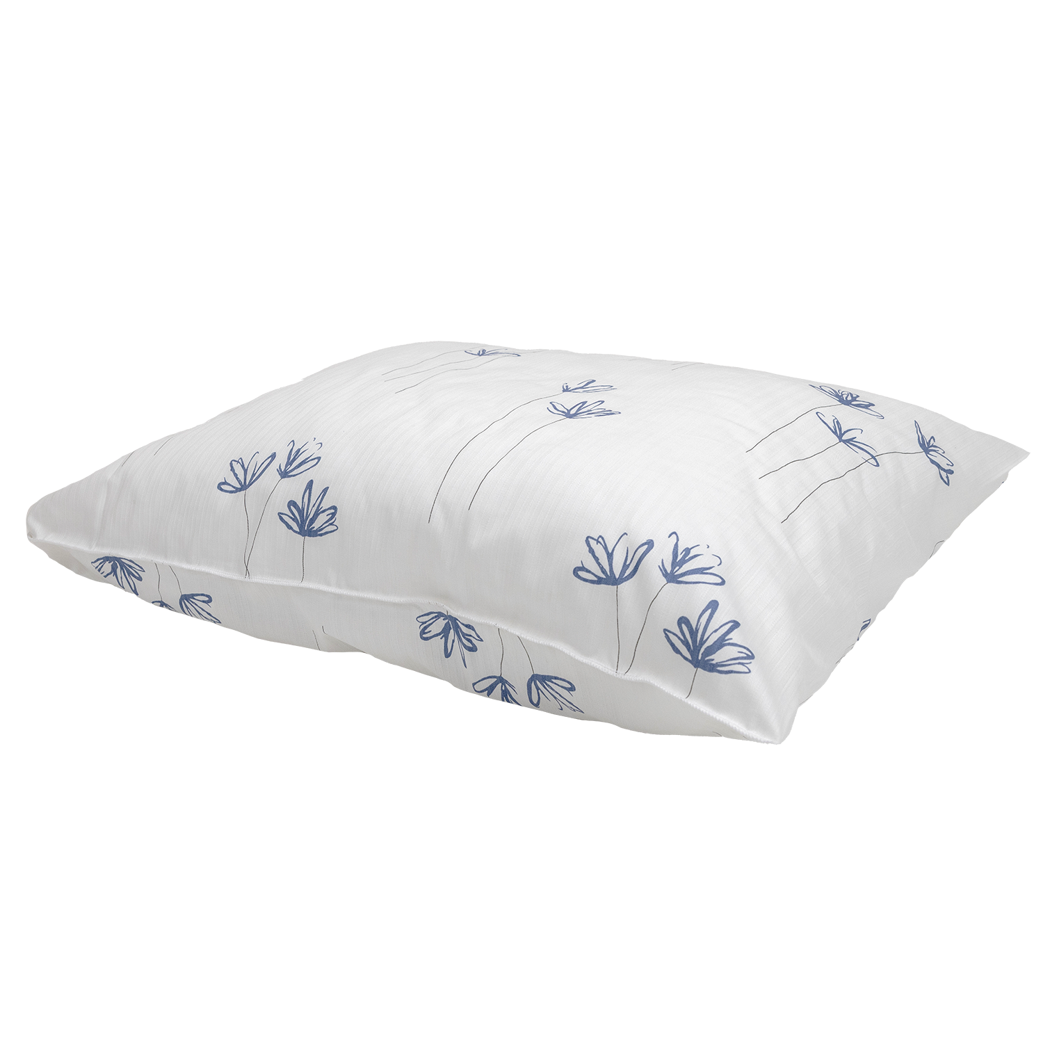 Kreppet putetrekk med blått kornblomstmønster. 50x95cm med sideåpning. Med UHF chip.