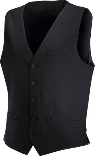 En klassisk herrevest med stretch og beskyttende Bionic-finish (smuss- og vannavstøtende). Et tidløst plagg som fungerer like godt med skjorte under jakken som uten jakke. Hvis du jobber på hotell, restaurant eller resepsjon, er dette vesten for deg. Lengde fra midt bak 61,5 cm i størrelse 50. Vidden nederst på vest mellom liv og hofte er ca 2-3 cm slankere enn bryst.