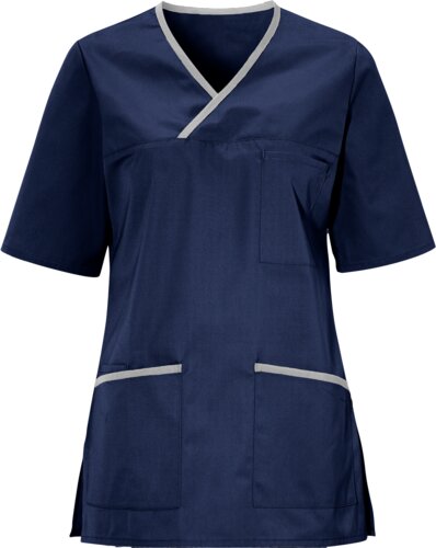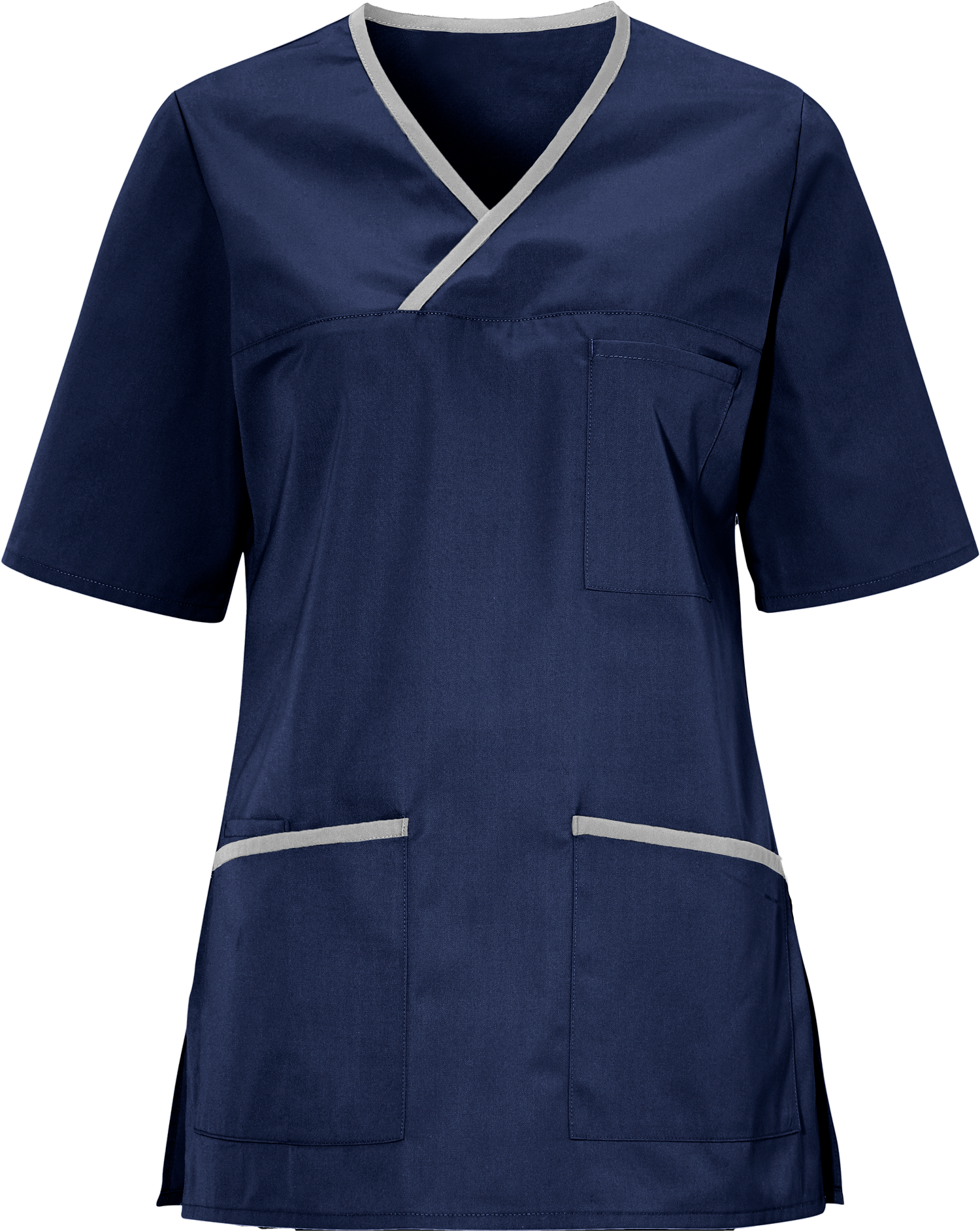 Dametunika / Kortermet / V-hals / Brystlomme / To lommer siden / Nøkkelhempe / Telefonlomme / Ventilasjon nederst