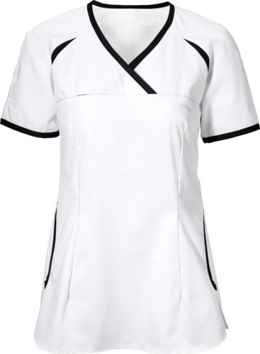 En elegant og feminin dametunika som passer deg som jobber innen helse, tannlege eller spa & skjønnhet. Tunikaen er figursydd og laget av stretchmateriale som gjør den behagelig. Kan lett kombineres med et par passende bukser. Lengde midt bak 72 cm i størrelse M.