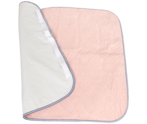 Sengekladd med avrundede hjørner. Beskytter underlaget mot lekkasje. Med håndtak laget av web-band 70x2,5cm trenset hver 13cm.