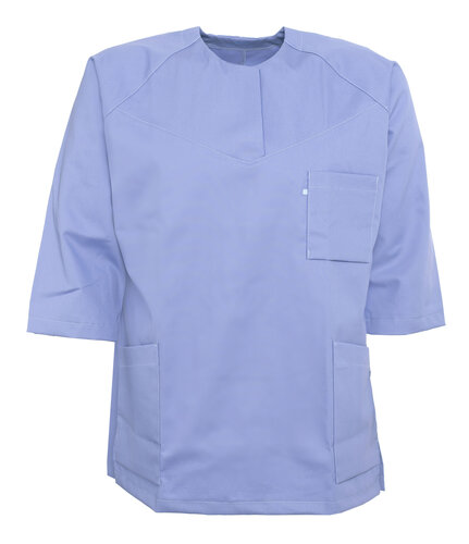 Kittel / Unisex / ¾ raglanerme / en brystlomme / to skråstilte sidelommer / splitt i sidene / rund hals med splitt / kulørte kitler, nøkkelhempe i høyre lomme / fargekodet størrelsesmerking på brystlomme