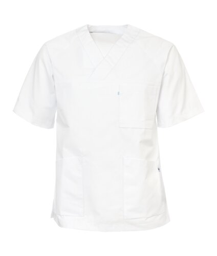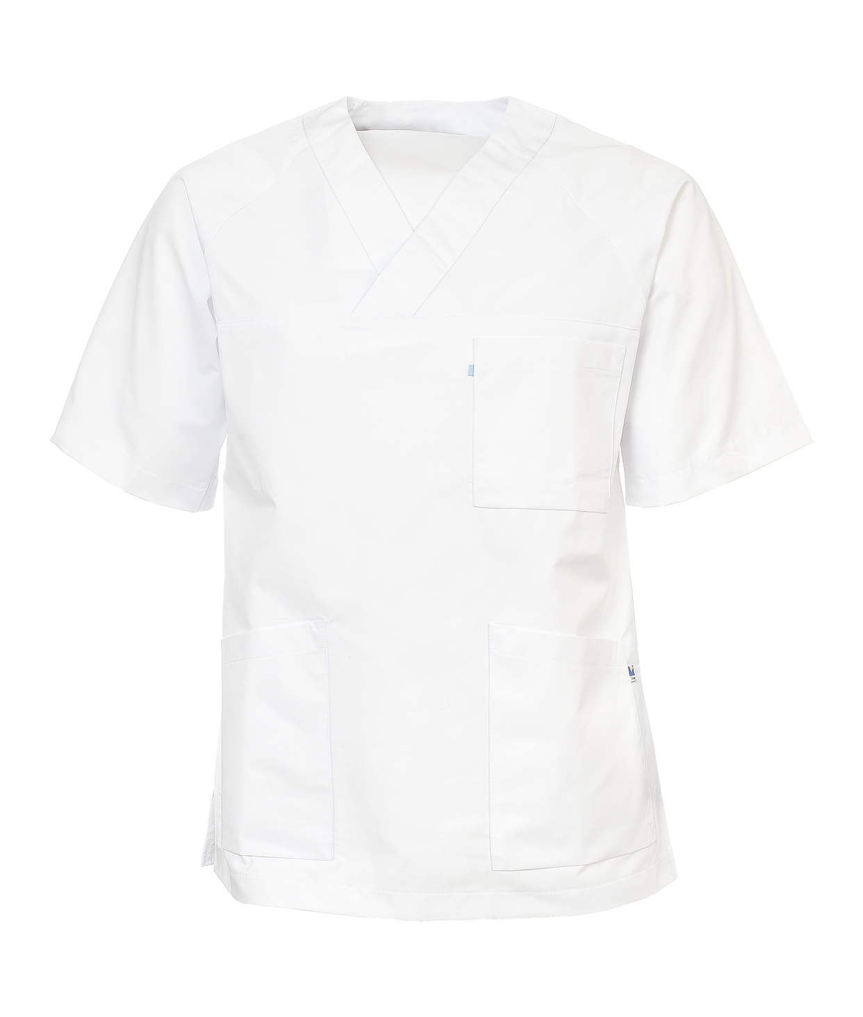 Vår bestselgende kittel med buet kort raglanerme og en brystlomme. UHF Chip og Made in Green. To skråstilte sidelommer og splitt i sidene. V-hals. Kulørte kitler har nøkkelhempe i høyre lomme. Fargekodet størrelsesmerking på brystlomme.