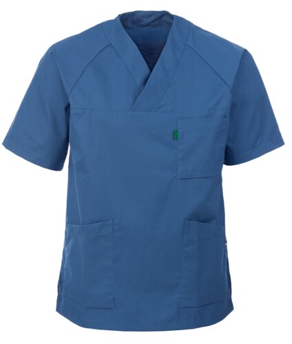 Vår bestselgende kittel med buet kort raglanerme og en brystlomme. To skråstilte sidelommer og splitt i sidene. V-hals. Kulørte kitler har nøkkelhempe i høyre lomme. Fargekodet størrelsesmerking på brystlomme.