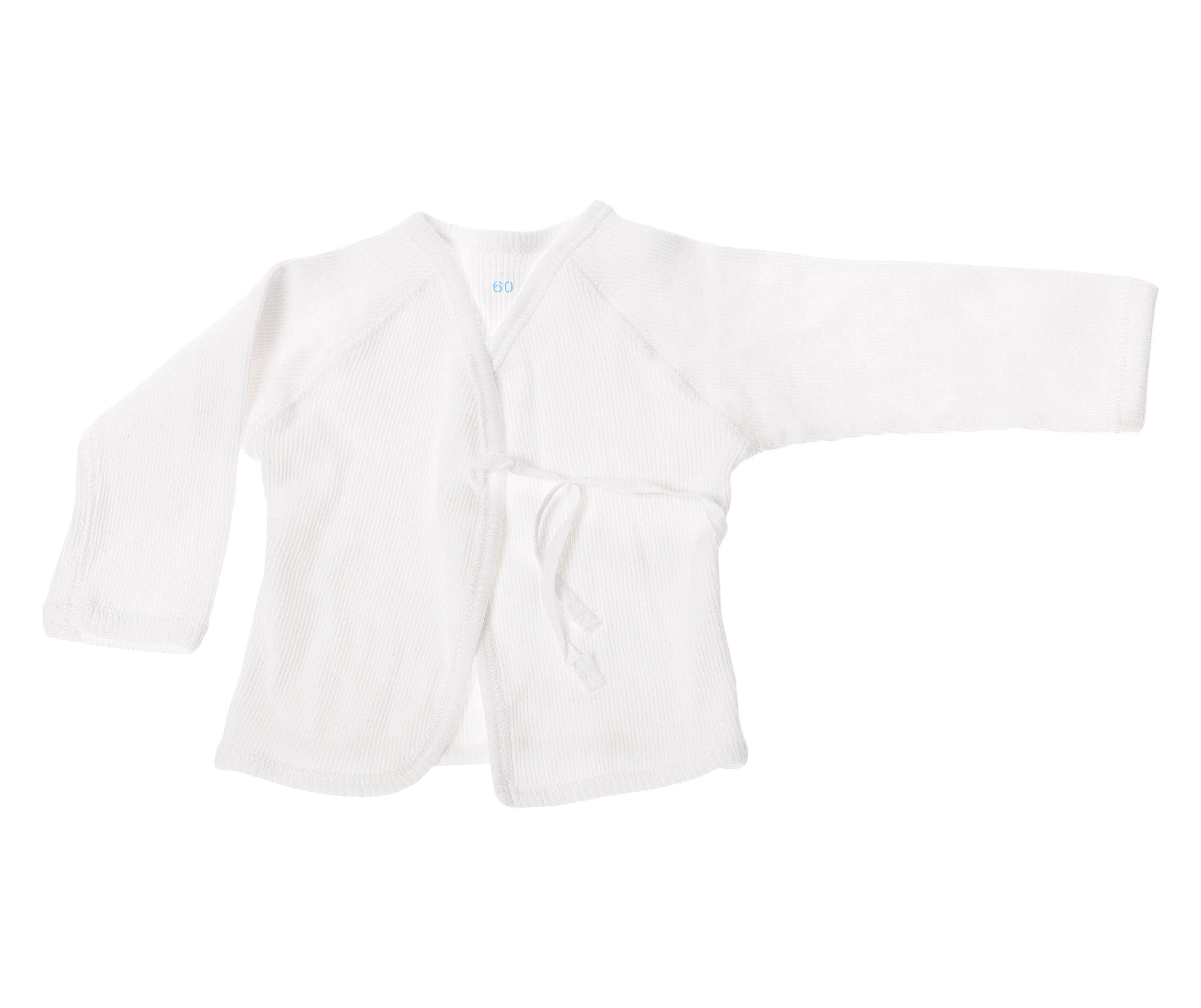 Babytrøye / Langermet / Pasientbekledning / Bomull / 2/2 ribbstrikket / Knyting bak / Basert på NS 4359